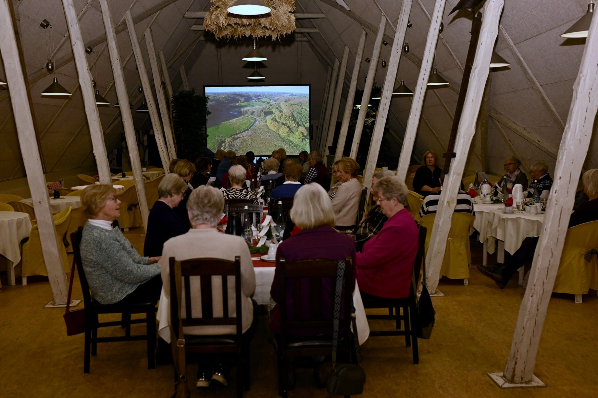 Nach der Begrüßung wurde Kaffee und Kuchen gegessen und auch viel geklönt. Dann stimmten einige Chordamen die von Elisabeth Hansen mitgebrachten Liedertexte an. Es folgte erst noch kurzer Videofilm von oben über unserer Heimat Schleswig-Holstein. Dann ging es los mit der Weltreise die auf unseren Wunsch auf 60 Minuten gekürzt mit Herr Gunnar Green